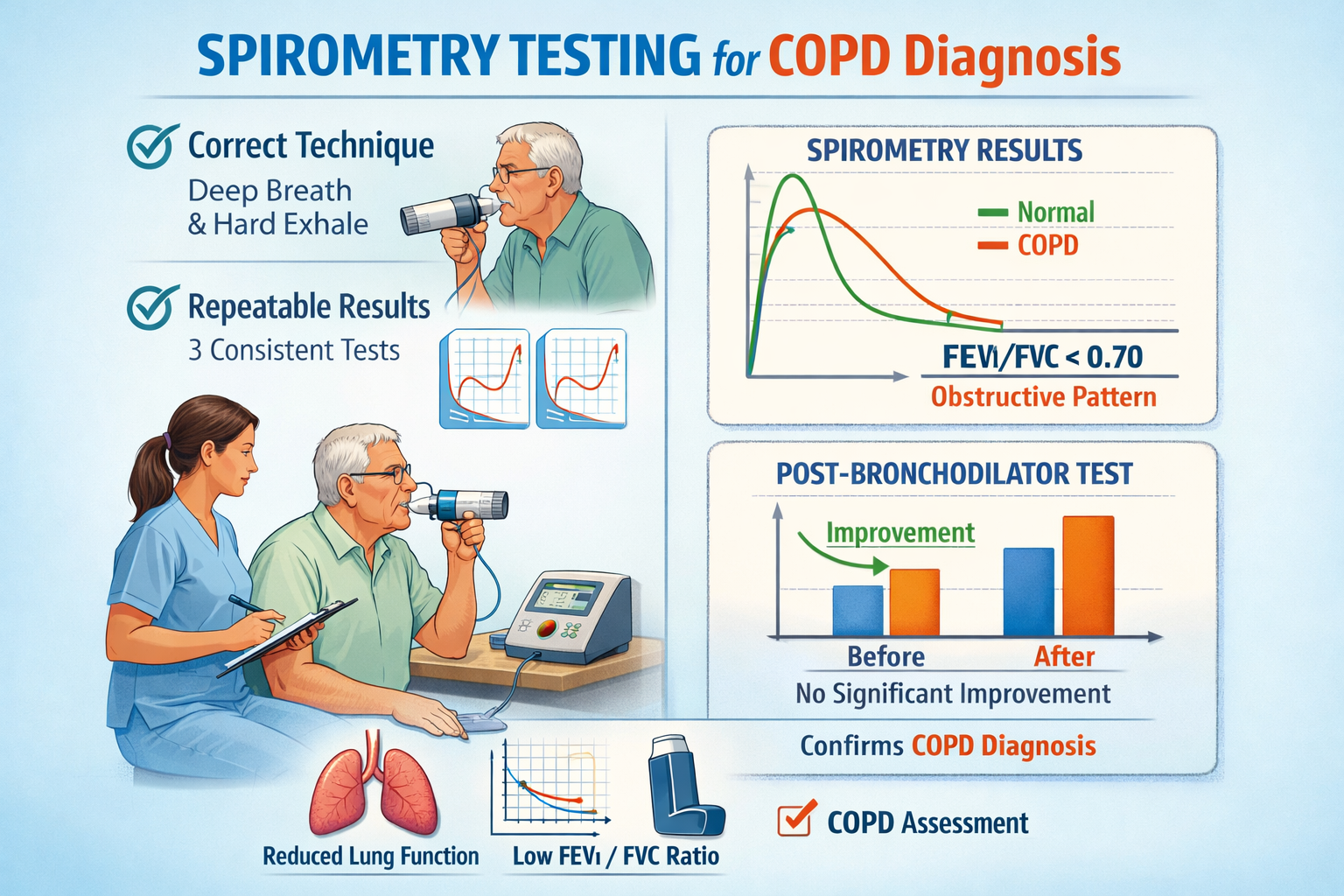 Importantly, the groups emphasise that differences between the two thresholds affect only a small proportion of patients and should not be a barrier to testing. Simplifying interpretation is intended to encourage wider use of spirometry, which remains essential for confirming COPD.
